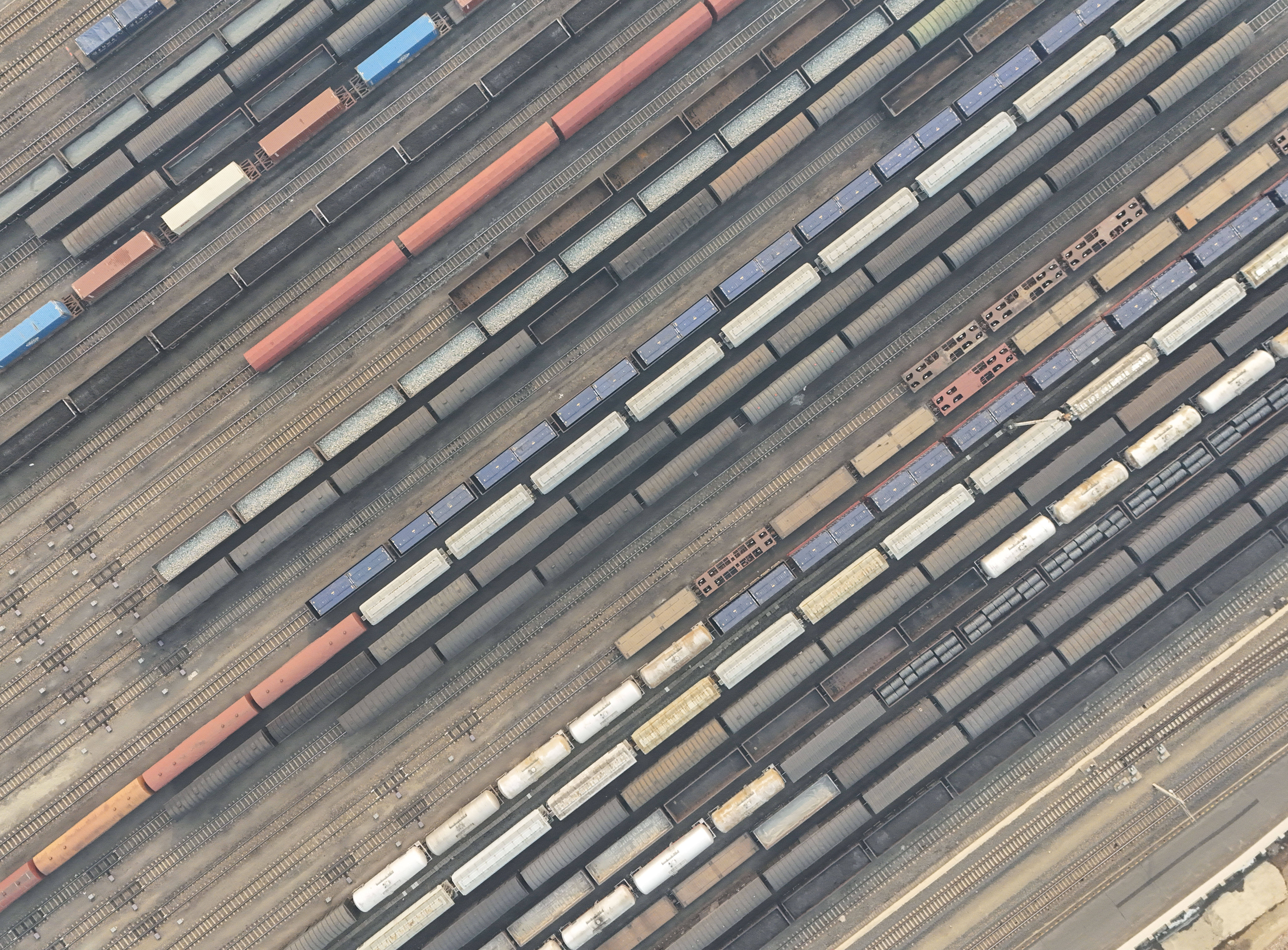 这是3月17日(ri)在哈尔滨南(nan)站(zhan)拍摄的编(bian)组后装载农资(zi)的货运列车(无人机照片)。
