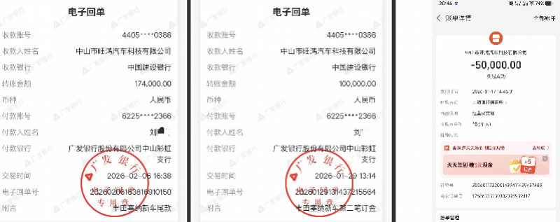 “我在短视频平台(tai)刷到了这个(ge)网红车商的账号‘旺(wang)哥(ge)聊车’,看到账号有5万多的粉丝量(liang),而且也卖了许多年车了,就想(xiang)着应当是有一(yi)定可信度的,所以便决定找(zhao)他买车。”陈先(xian)生介绍,本年1月17日,他以其(qi)老(lao)婆的名义,在该网红车商肖某的门店(dian)——旺(wang)哥(ge)聊车(中(zhong)山黄圃奥(ao)城花圃店(dian))订购了总(zong)价32.4万元的丰田赛那汽车,当天支付(fu)了5万元定金(jin)。