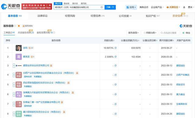 该(gai)公司(si)成立(li)于2019年6月,法定代表人为徐(xu)鸣,注册资本约4438万群众币,谋划(hua)范围含卫星技术综合运用系统集成、微小卫星生(sheng)产制造(zao)、卫星移动通讯终端制造(zao)等(deng)。股东信息表现,该(gai)公司(si)由徐(xu)鸣、建银金辰创业投资有限公司(si)、合肥家当投促高新创业投资基金合资企业(有限合资)等(deng)共同持股。