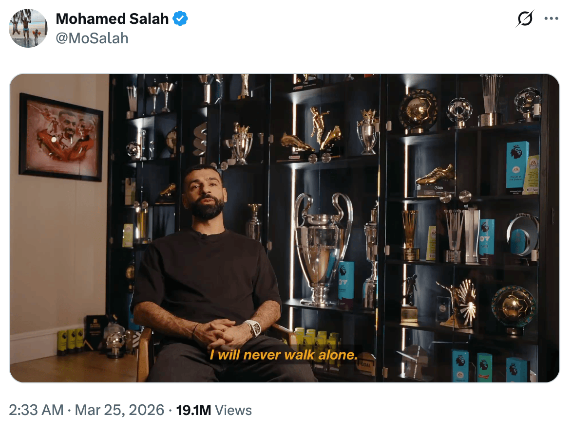 当地时间3月24日(ri),英超利物浦队球星穆罕默德·萨拉赫(he)正在社交媒体平台公书记(ji)别视频,宣告将于本赛季结束后(hou)离队,结束9年利物浦生涯(ya)。