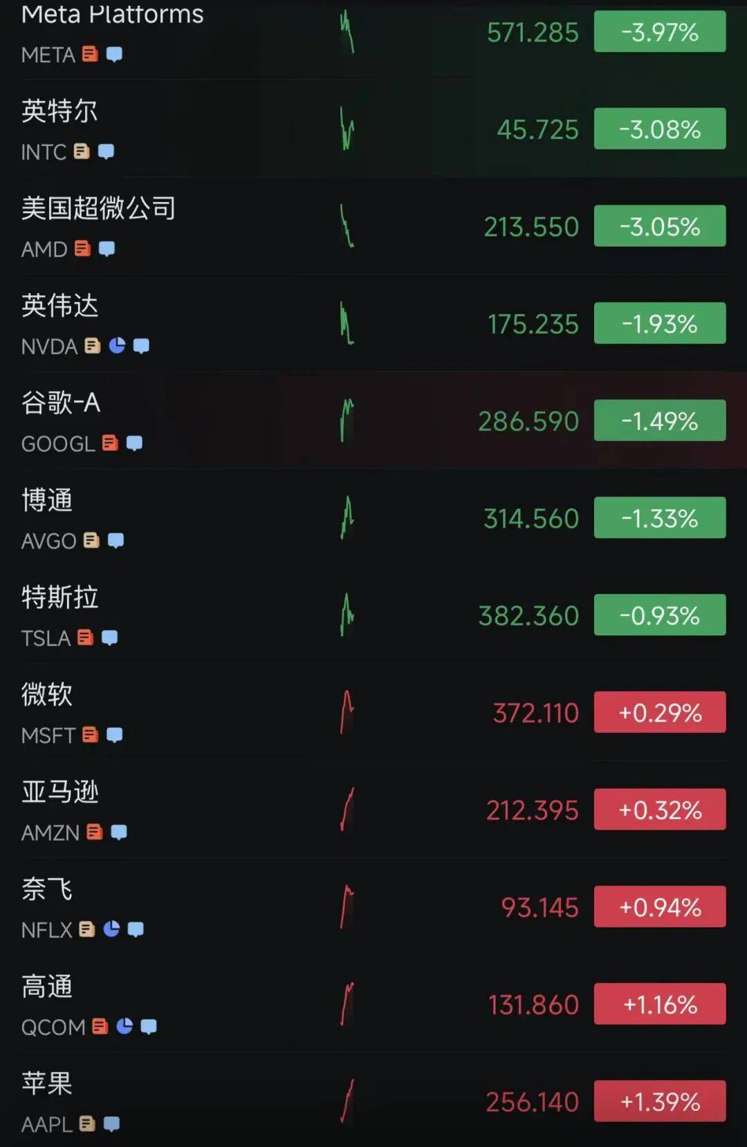 明(ming)星科技股涨跌(die)不一。Meta Platforms跌(die)3.97%,英特(te)尔跌(die)3.08%,英伟达下(xia)跌(die)1.93%,谷歌(ge)-A跌(die)1.49%,特(te)斯拉下(xia)跌(die)0.93%;微软涨0.29%,亚马逊涨0.32%,奈飞涨0.94%。苹果涨1.39%。
