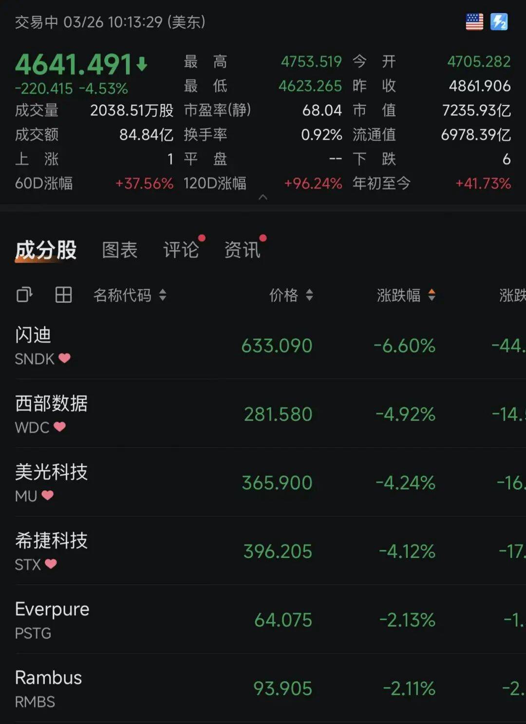美股芯片(pian)存储板块普跌(die),闪(shan)迪跌(die)6.6%,西部数据、美光(guang)科技、希捷科技均跌(die)超4%。