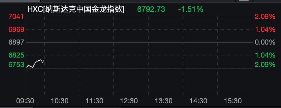纳斯达克(ke)我国金龙指(zhi)数一度下(xia)跌(die)2%,停止发稿,跌(die)1.51%。