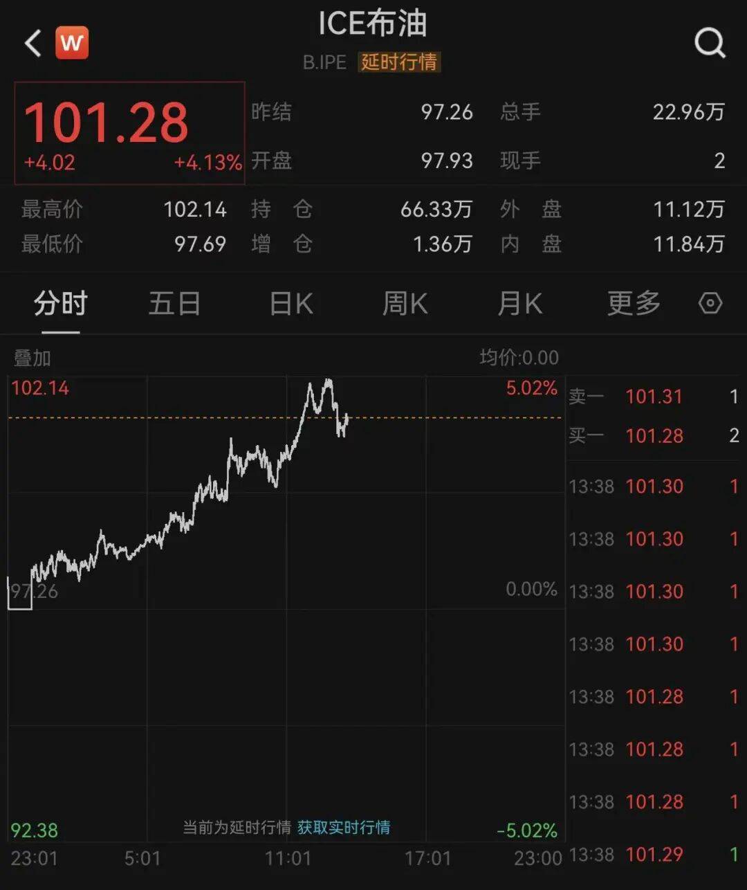 国际油价连续(xu)拉升(sheng),美油涨3.96%,布油涨超4%,站上100美元/桶。