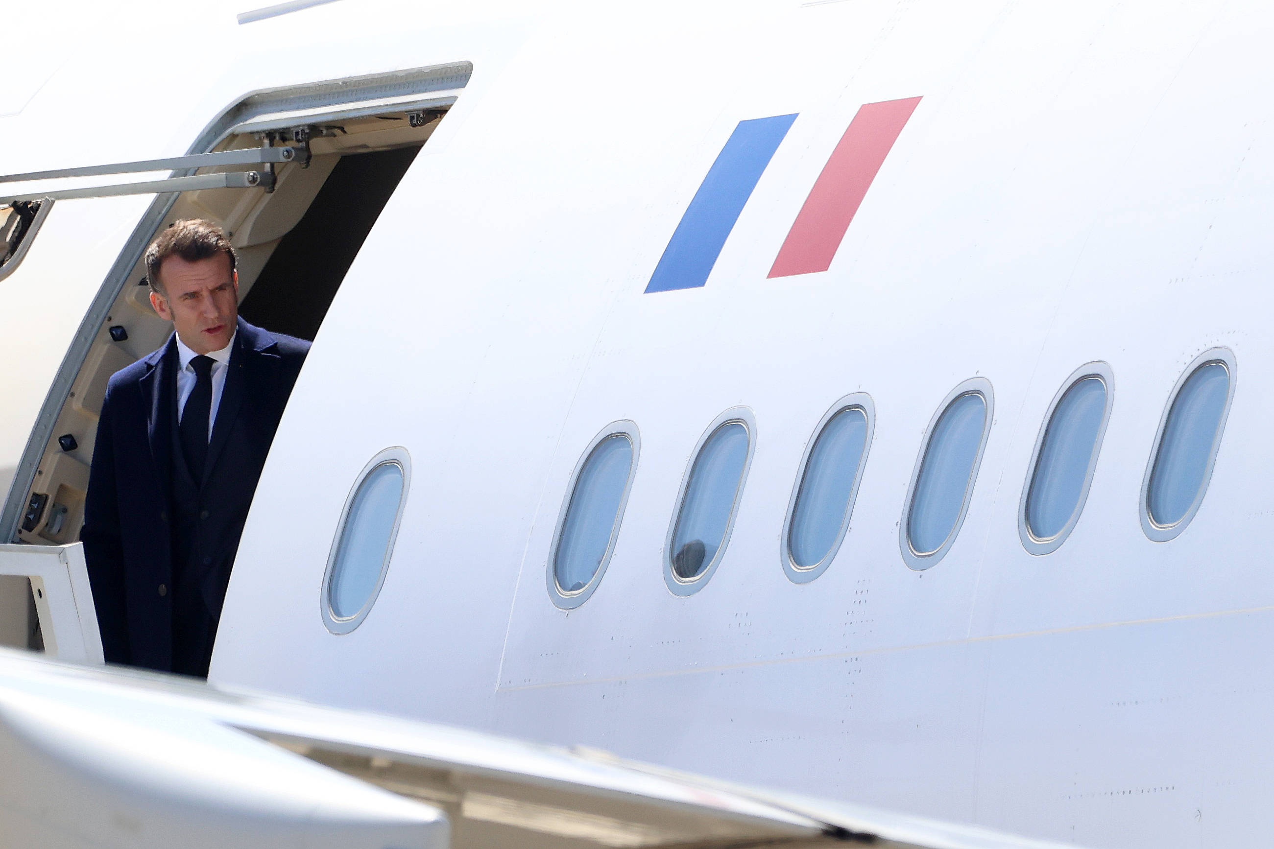 3月9日,法国总统马克龙抵达(da)塞(sai)浦路斯西南部的帕潘德里欧(ou)空军基地(di)。新华社发(乔治(zhi)·克里斯托弗鲁摄)