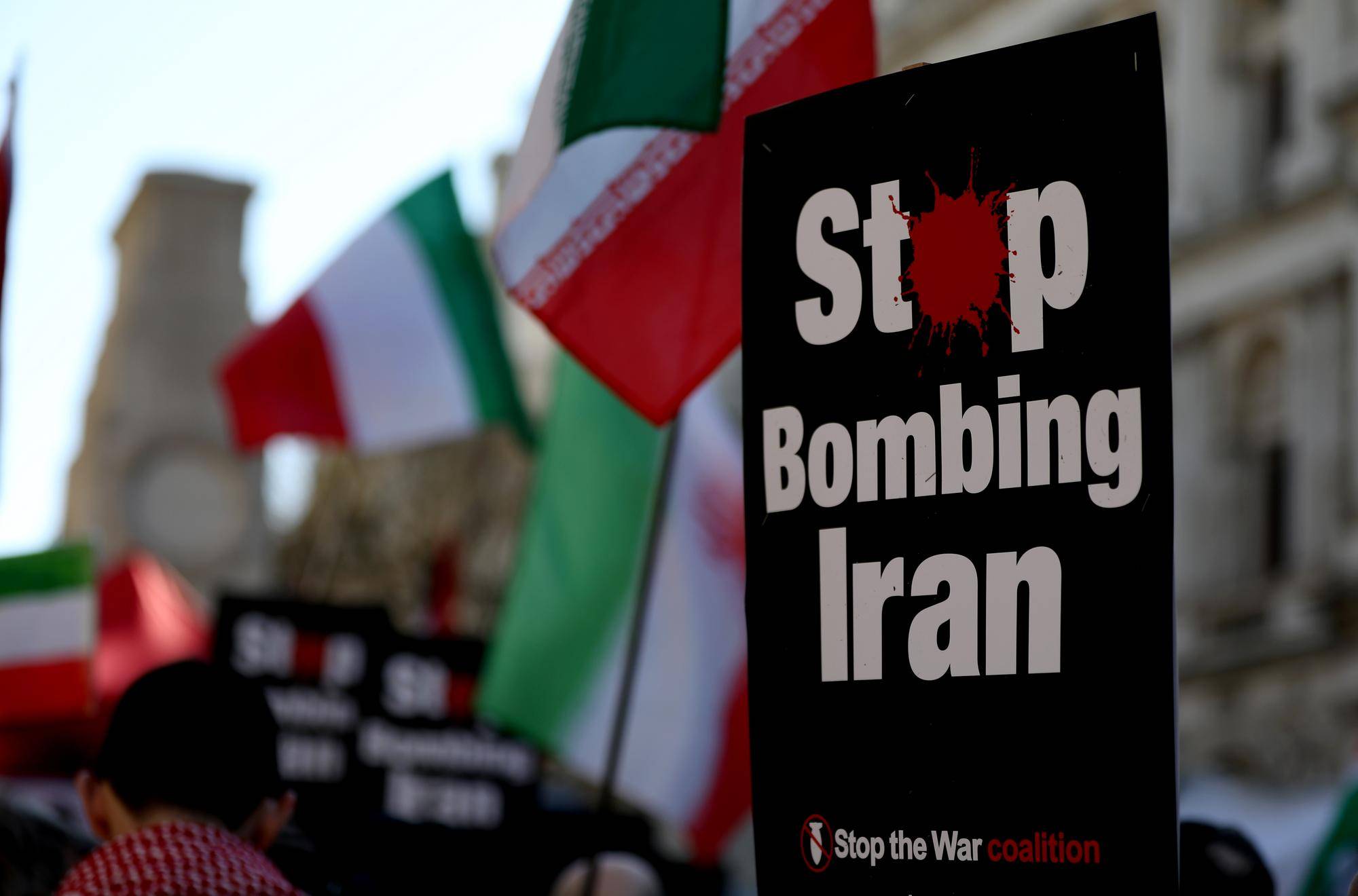 3月21日,人们在英国伦敦参加集会,抗议美国和以色列(lie)对(dui)伊朗发动军事打击。新华社记者李颖摄