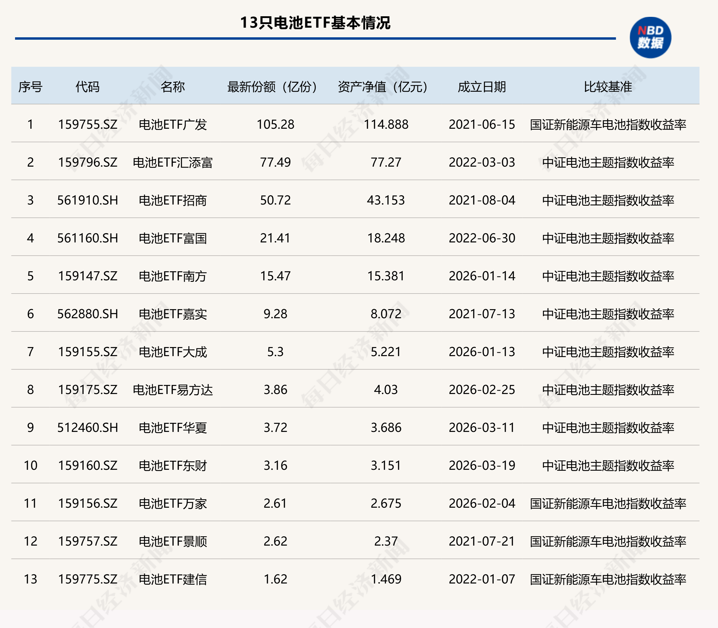 Wind数(shu)据显示,13只“电池ETF”分(fen)别以(yi)下: