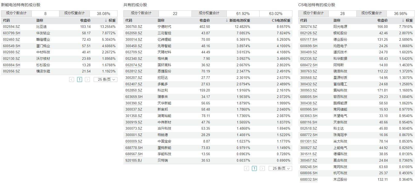 进一步对比两个指(zhi)数(shu)的成(cheng)分(fen)股,可以(yi)发现(xian)重叠的成(cheng)分(fen)股有22只,国证新(xin)能源车电池指(zhi)数(shu)独有的成(cheng)分(fen)股有8只,主要包含了比亚迪、华友钴(gu)业、赣锋锂(li)业等,中证电池主题指(zhi)数(shu)独有的成(cheng)分(fen)股达28只,主要包含了阳光电源、银轮股份、德业股份等。