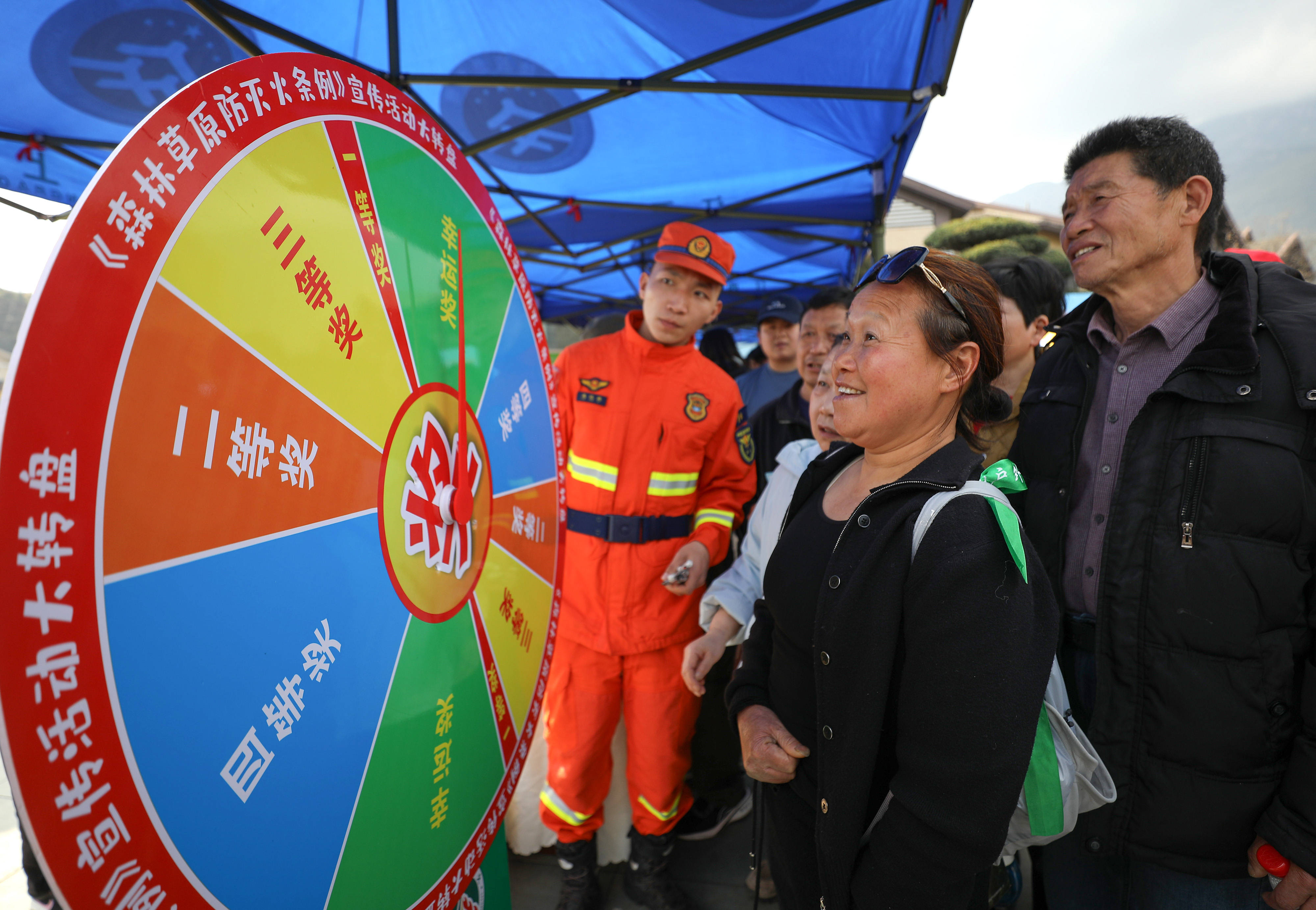 3月25日,游客参加《森林草原防灭火条例》宣传流动。 新华社记者 杜潇(xiao)逸 摄