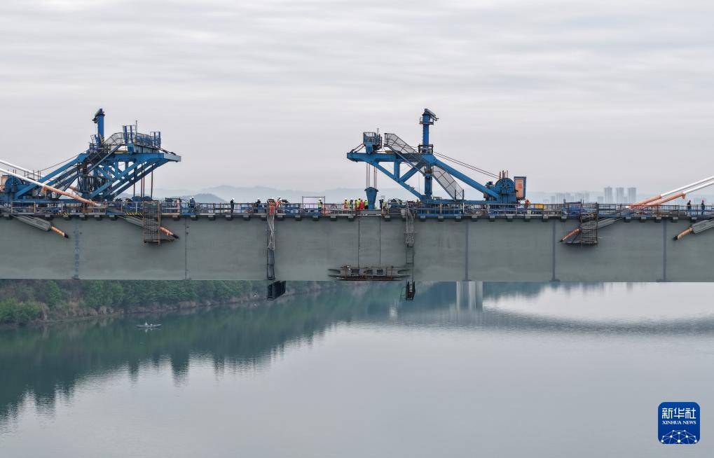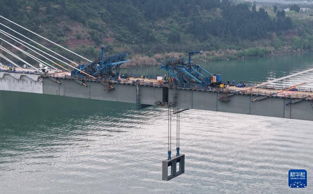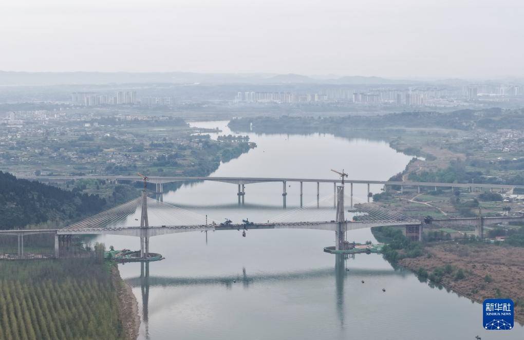 3月(yue)25日,正在成达万高(gao)铁嘉陵(ling)江(jiang)特大(da)桥(qiao)施工现场,最后一段钢箱梁吊(diao)装完成(无人机照片)。