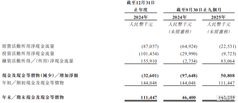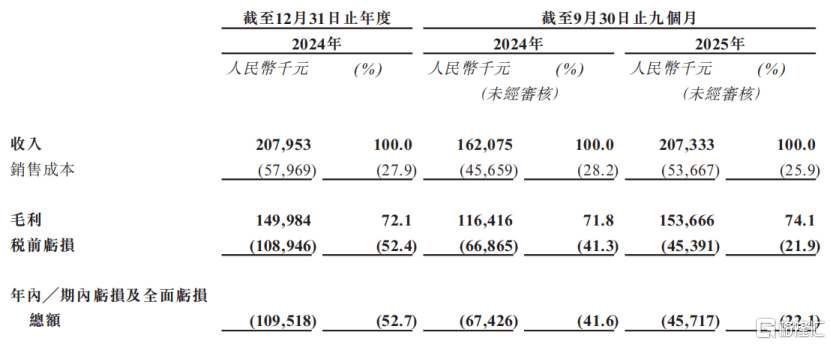 2024年及2025年1-9月(报告(gao)期),公司的收入分别为2.08亿元、2.07亿元,净利(li)润分别录得吃亏1.1亿元、4572万元。