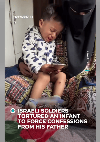 18月大的贾瓦德·阿布·纳萨尔身上可见伤口,被以色(se)列开释后一直痛哭。 土耳其广播电视公司