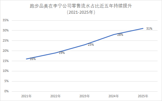 过(guo)去(qu)五年跑步品类在李(li)宁公司零(ling)售流水占(zhan)比逐(zhu)年提升。