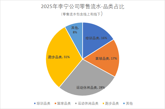 2025年李(li)宁公司零(ling)售流水品类占(zhan)比。