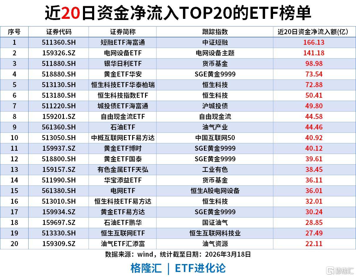 近20日ETF资金净(jing)流(liu)入TOP20(截(jie)至2026-03-18)