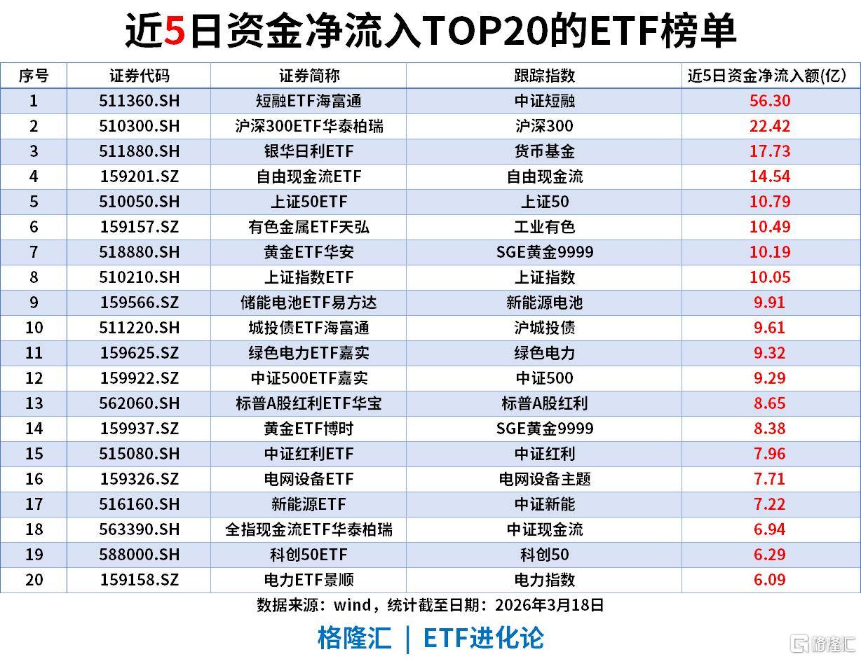近5日ETF资金净(jing)流(liu)入TOP20(截(jie)至2026-03-18)