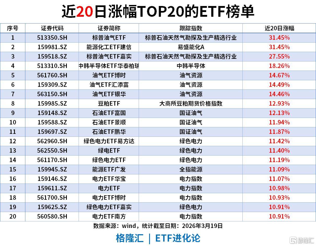 近20日涨幅(fu)TOP20ETF(截(jie)至2026-03-19)