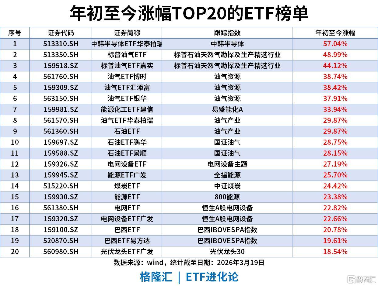 年初至今涨幅(fu)TOP20ETF(截(jie)至2026-03-19)