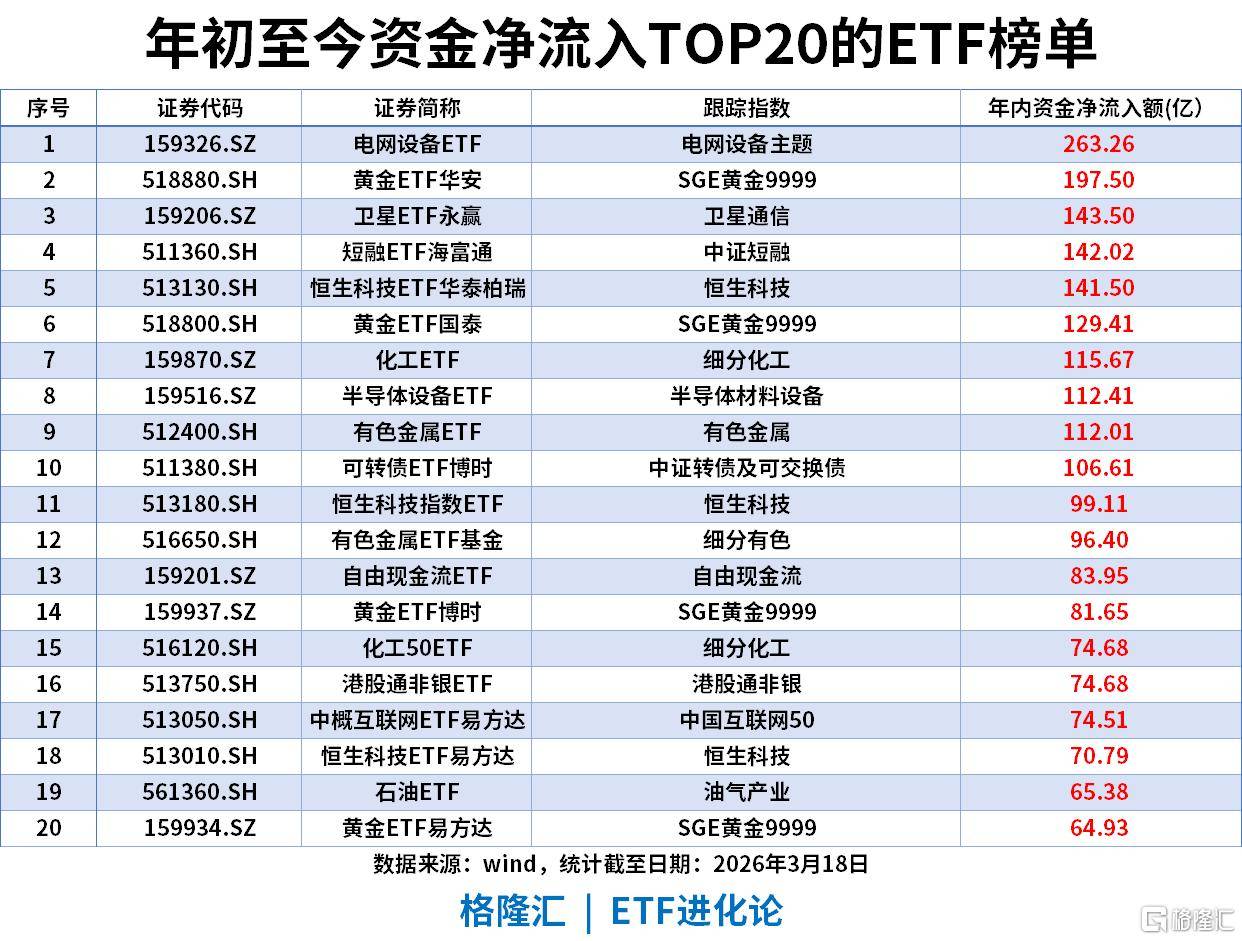 年初至今ETF资金净(jing)流(liu)入TOP20(截(jie)至2026-03-18)