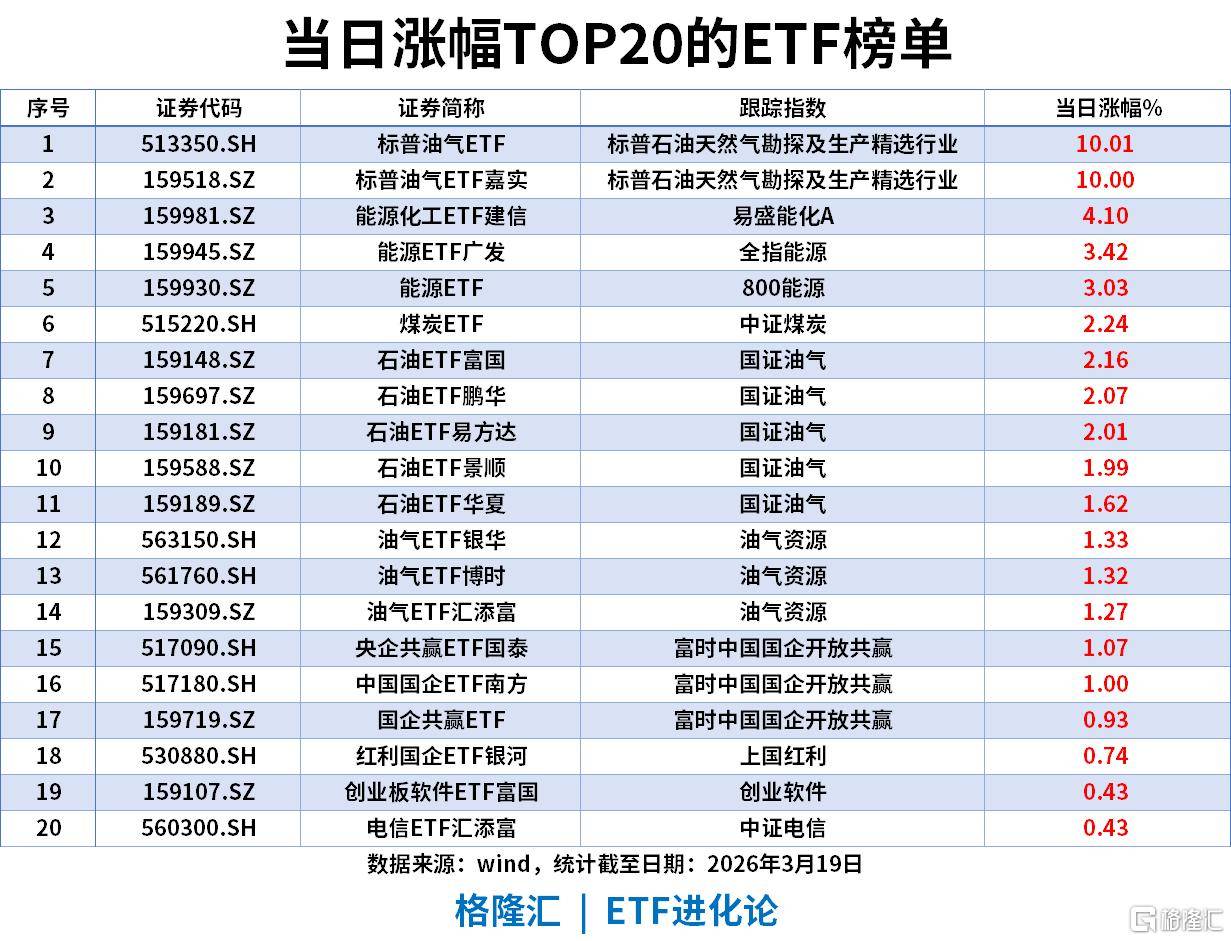 当(dang)日涨幅(fu)TOP20ETF(截(jie)至2026-03-19)