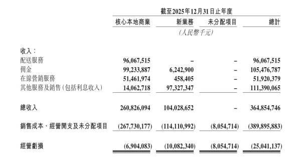 财(cai)报(bao)显示,2025年,美团核心本地商业板块(kuai)收入2608亿元,经营亏损69亿元。个中第四季(ji)度(du)核心本地商业收入648亿元,经营亏损100亿元,较三季(ji)度(du)环比大幅收窄(zhai)。