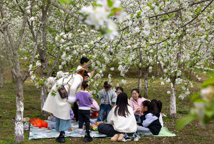 ▲游客围坐在花海间,共享野餐时光。通讯员 瞿(ji)波 摄