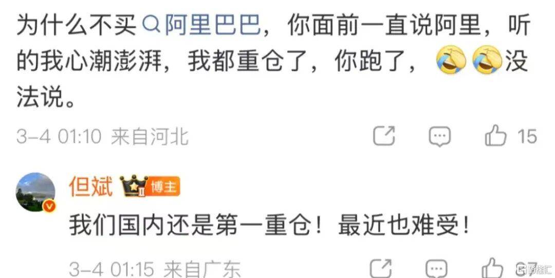有网友评论:为(wei)什么(me)不买阿里巴巴,你眼前(qian)不停说阿里,听的我心潮澎湃,我都(dou)重(zhong)仓(cang)了,你跑了,没(mei)法说。