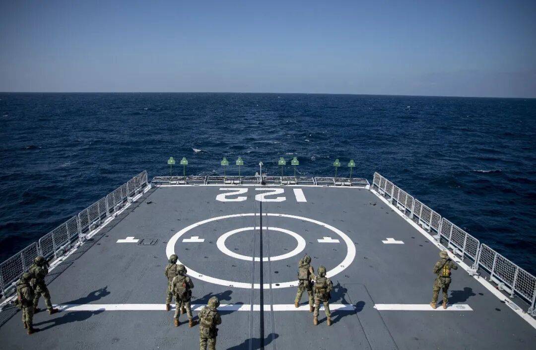 编队正在实行常态化(hua)护航(hang)任务(wu)的同时