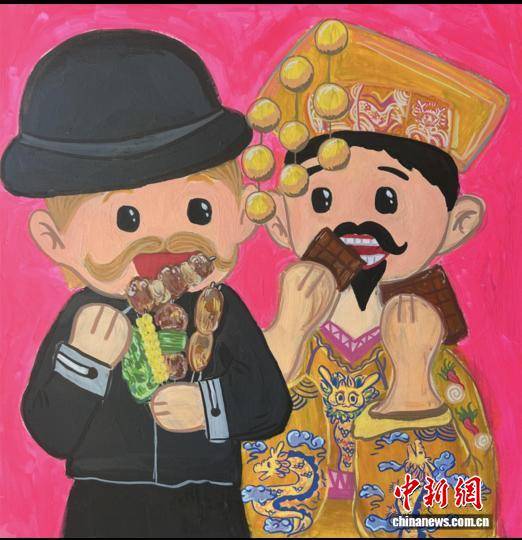 参展中国小画家梁宸菲带来的画作“中西(xi)合(he)馋”。中新网发 布鲁塞尔中国文化中心供图