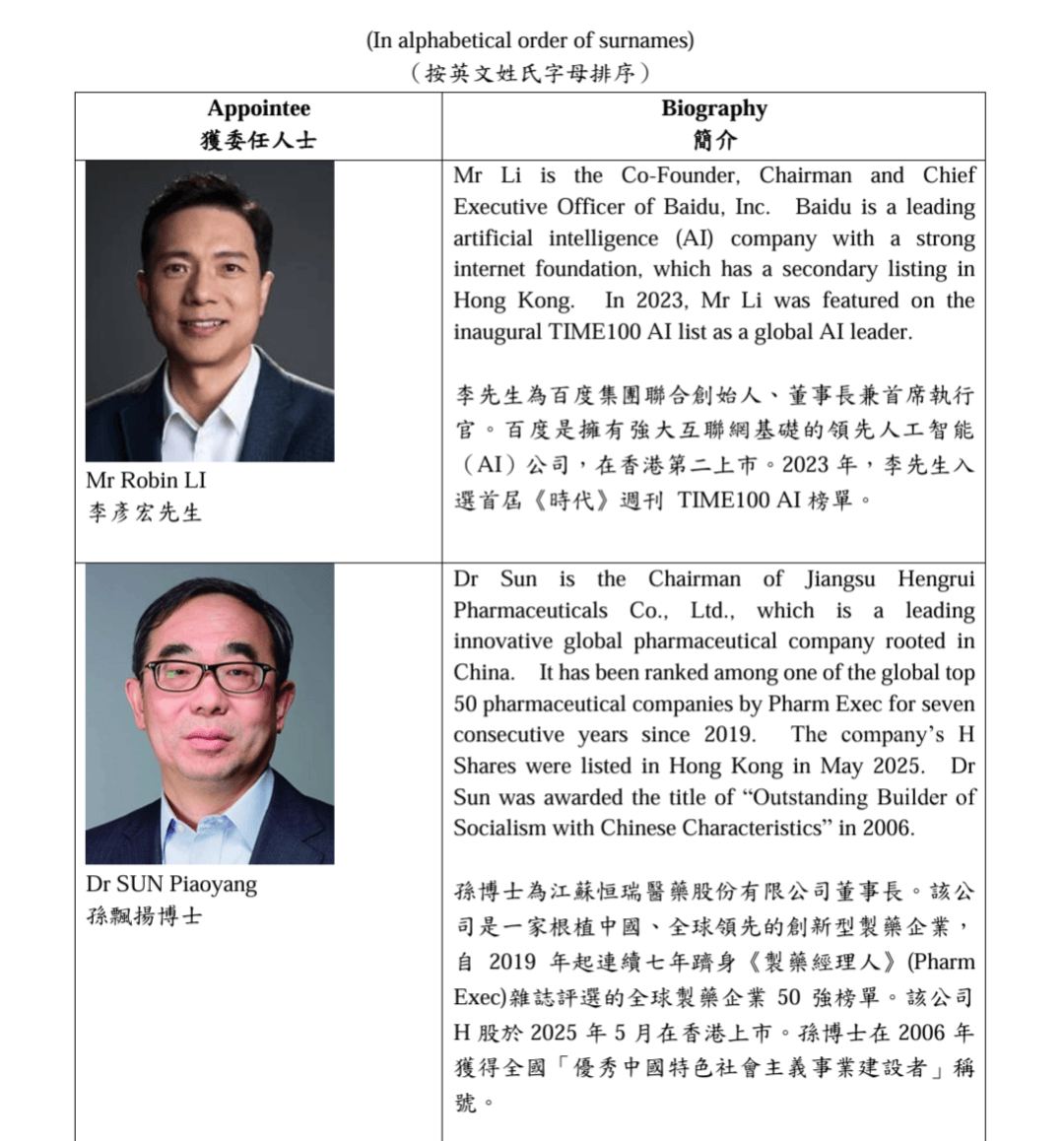 顾问团成员名单显示,4名新委任成员均归属顾问团“创新与创业”组。有关任期自2026年4月1日起见(jian)效,至2027年6月30日止。