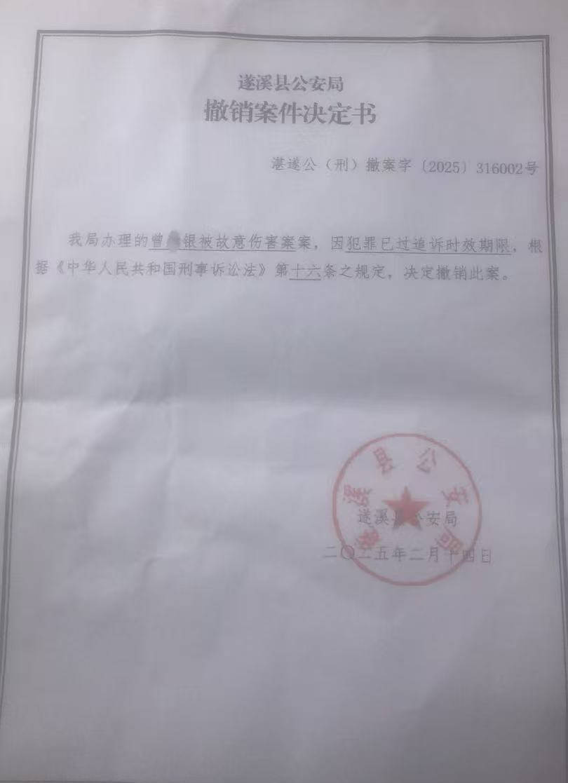 2025年2月,遂溪县(xian)公安局作出的《撤销(xiao)案件(jian)决定书》表现,以犯法已过追诉时效限期(qi)为由撤销(xiao)此案。