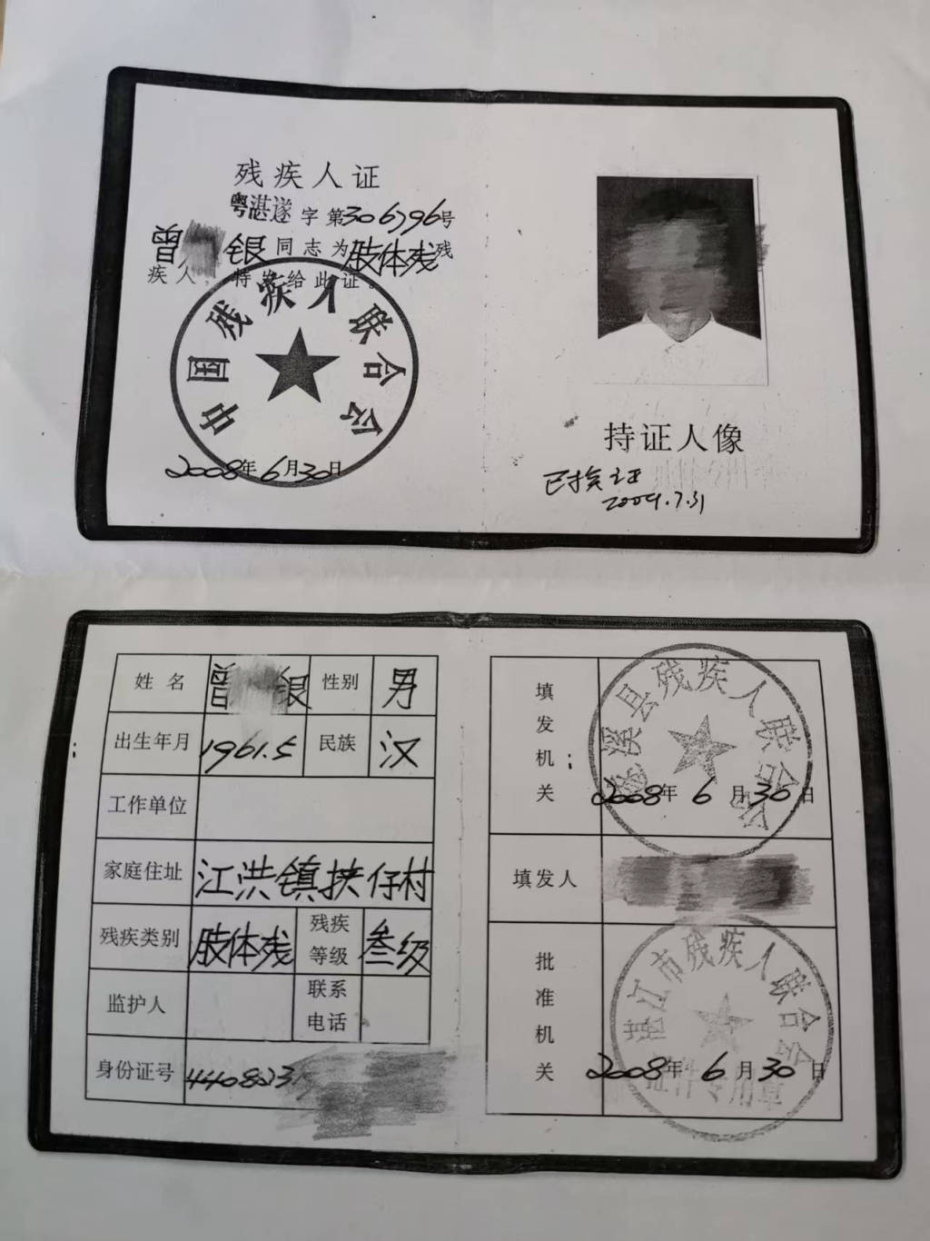 曾某银的残疾证(zheng)