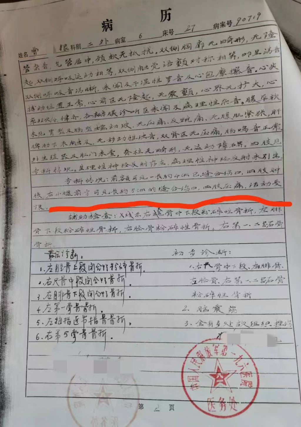 曾某银的诊断书,表现其四肢多处骨折。本文图片 受访者 供图