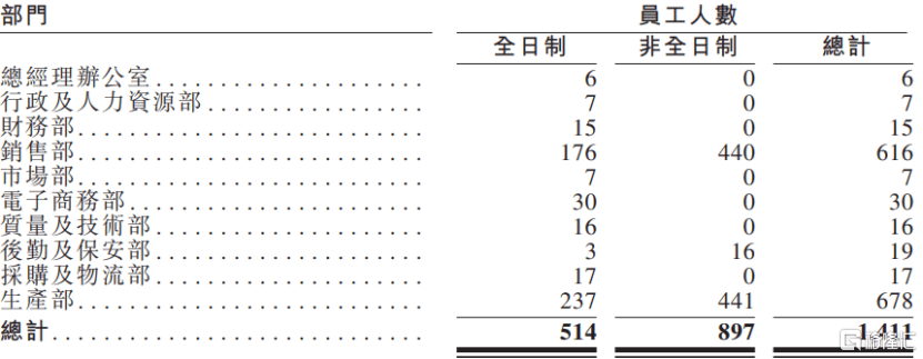 2025岁尾(wei),齐云山(shan)食品(pin)共有(you)1411名员工,其中有(you)514名全日(ri)制僱员、897名非全日(ri)制僱员。