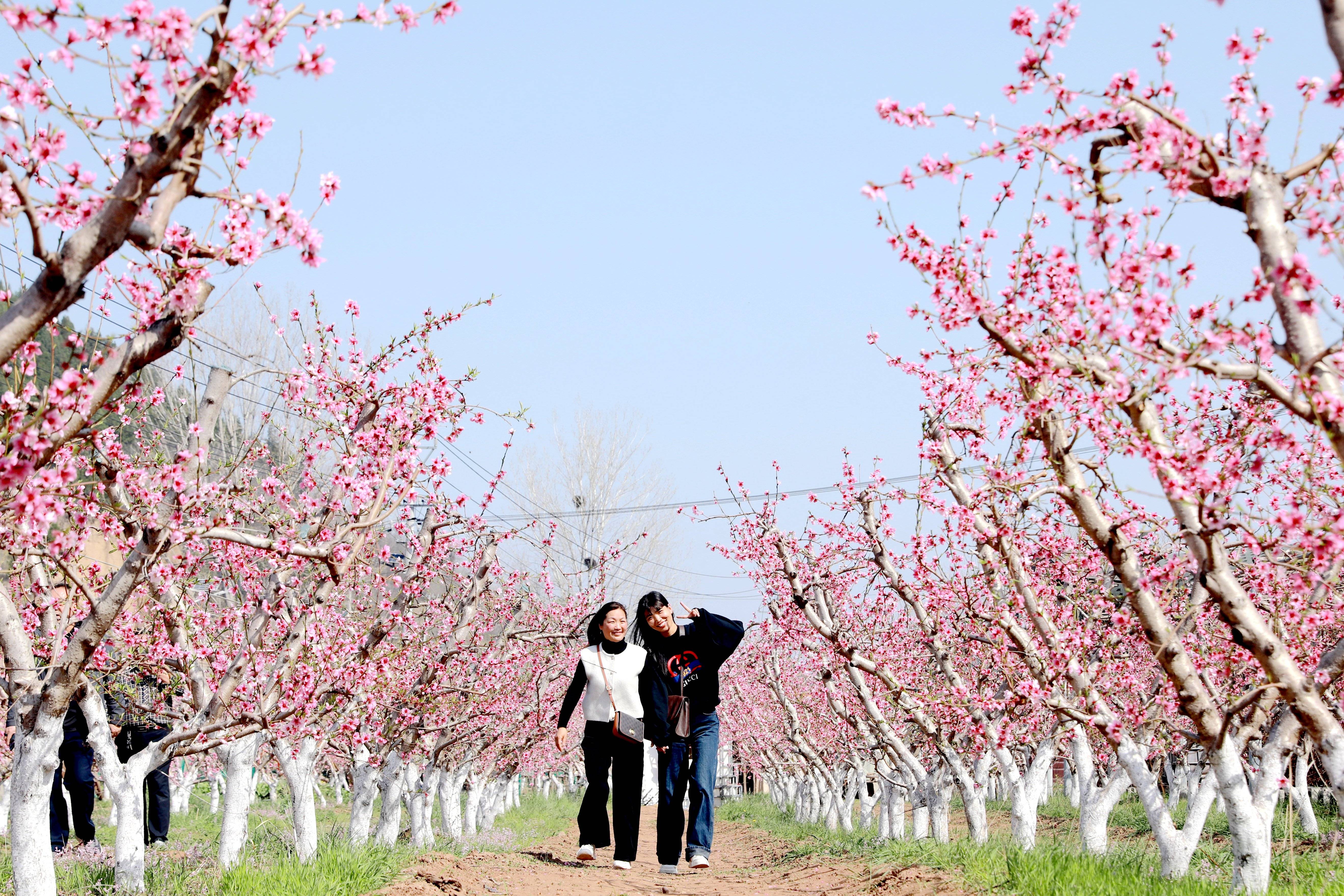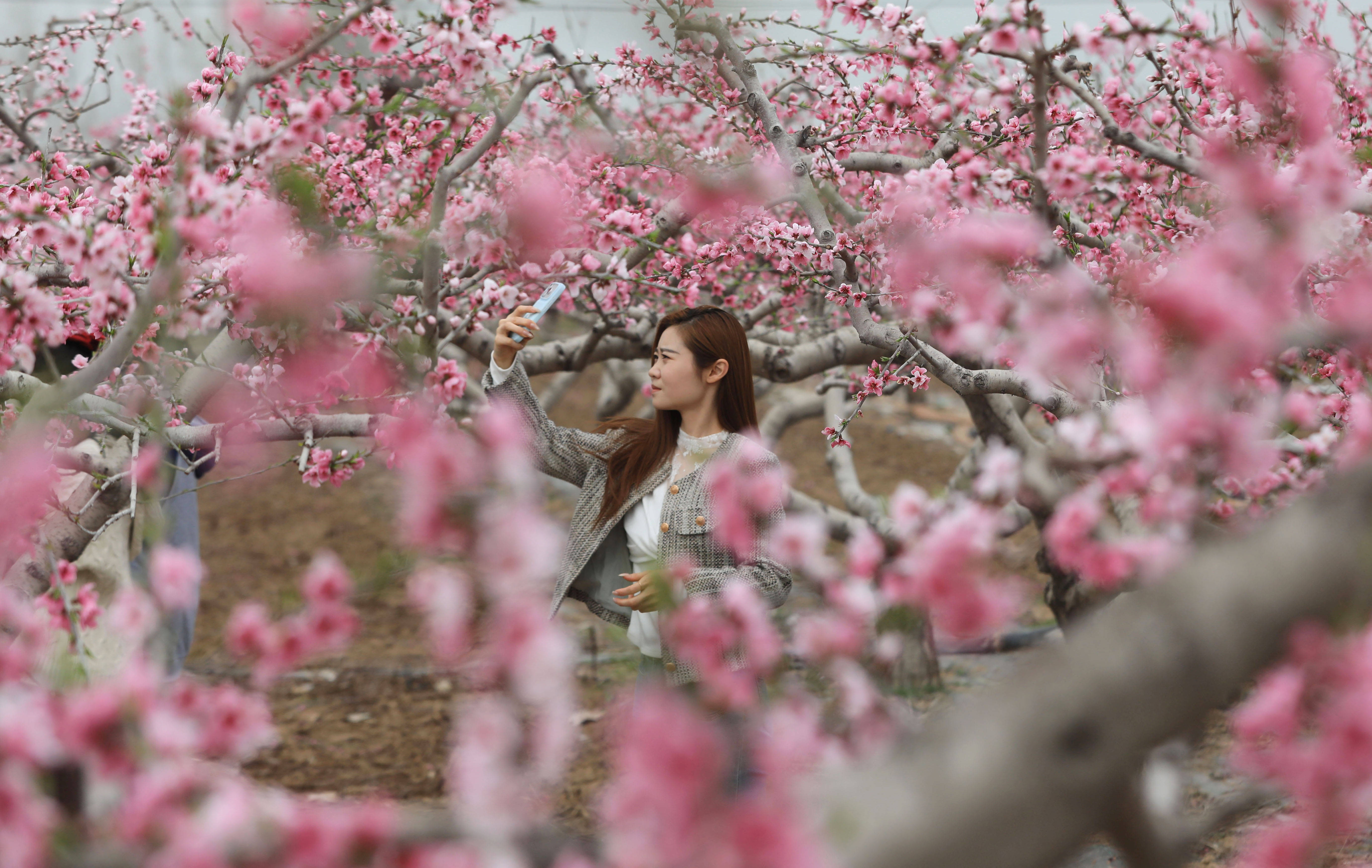 3月(yue)25日,旅客正在河南省济源市(shi)坡(po)头镇清涧村百亩桃园打卡拍照。 新华社(she)发(段二平摄)