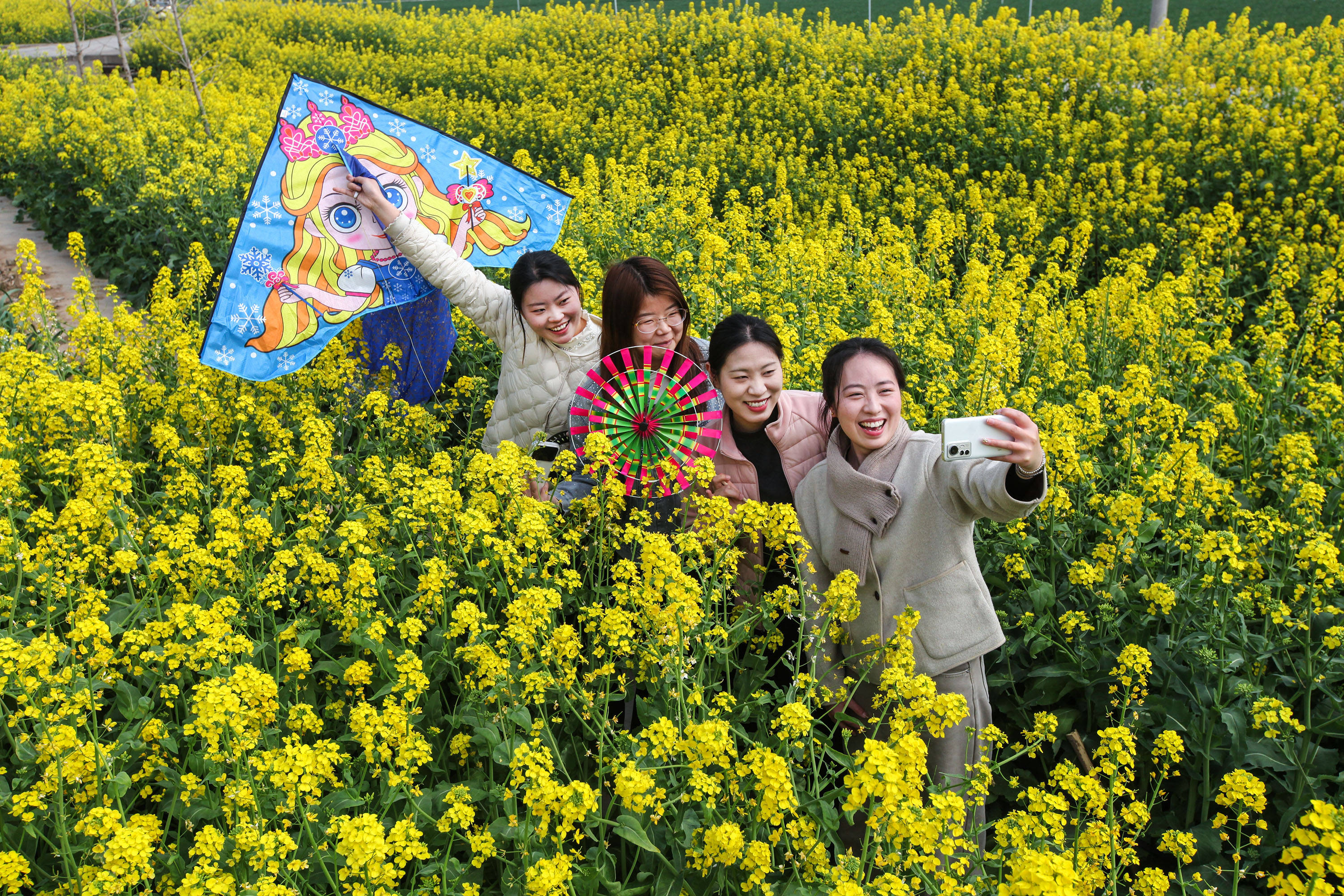 3月(yue)26日,河南省焦作市(shi)博爱县(xian)金城乡韩(han)庄村,旅客正在油菜花旁拍照打卡。 新华社(she)发(程全摄)