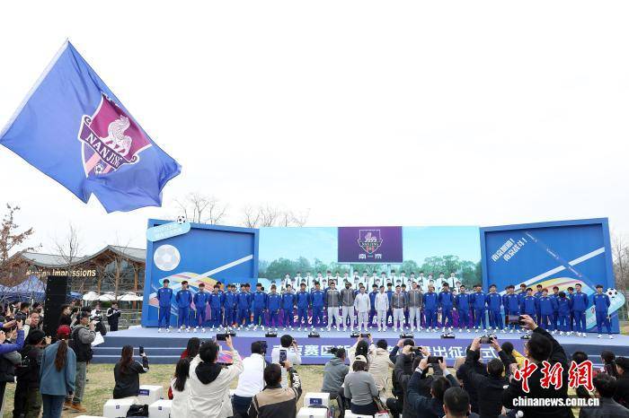 3月26日,2026江苏省乡村足球联(lian)赛(苏超)南京赛区新闻发布会暨出征仪(yi)式在玄武湖畔(pan)金陵(ling)STYLE浪(lang)漫中央举行(xing),南京队球员(yuan)、球迷、援(yuan)助商朝表、青训小球员(yuan)、赛事事情人员(yuan)齐聚,共同开启新赛季的足球之约。图为球迷们与南京队球员(yuan)共同出席出征仪(yi)式。中新社记者 泱波 摄