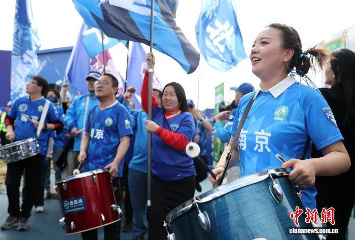 图为球迷们为南京队出征新赛季加油助势。中新社记者 泱波 摄