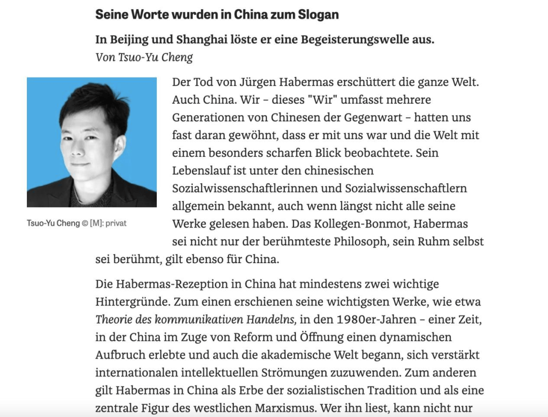 德国《时代(dai)周报》悼念哈贝马斯专题。